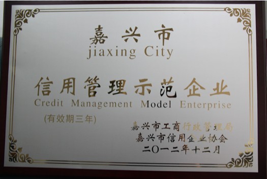 公司被授予“嘉興市信用管理示范企業”