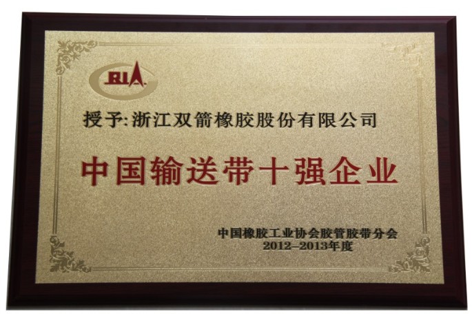 雙箭再次被授予為“中國輸送帶十強企業”